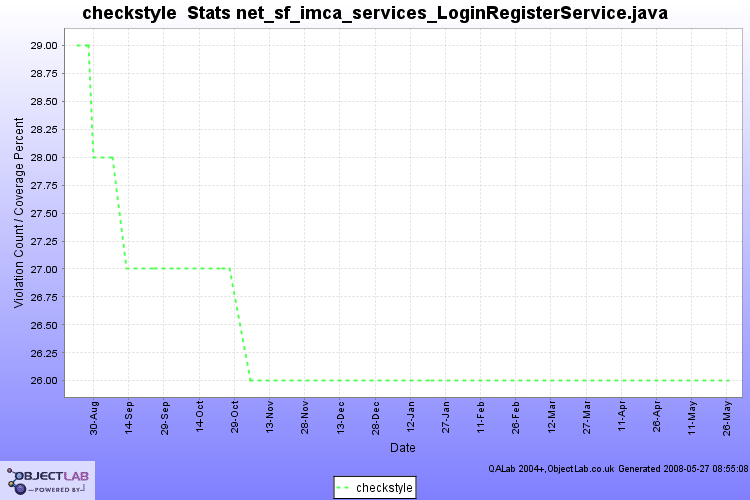 | Date | Checkstyle | PMD | FindBugs | Simian | PMD CPD | Cobertura line | Cobertura Branch |